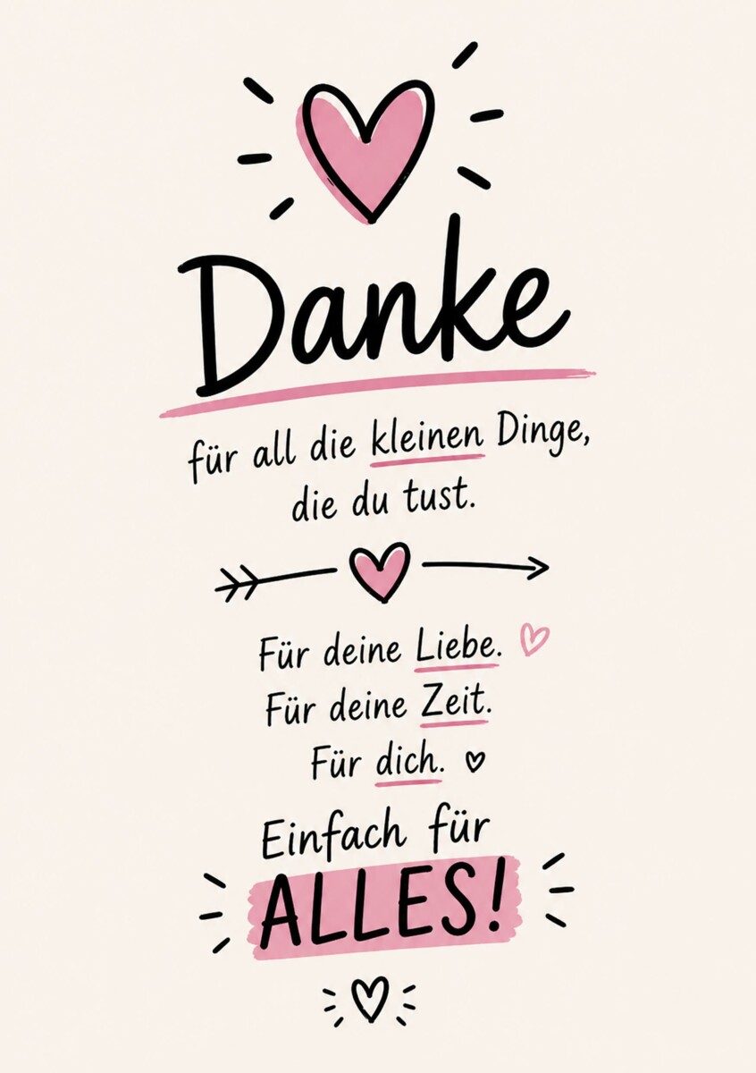 Du möchtest einfach mal Danke sagen – für all die kleinen Dinge, die oft selbstverständlich erscheinen? Dann ist diese liebevolle digitale Gruppengrußkarte „Danke – einfach für alles“ genau die perfekte Wahl.
